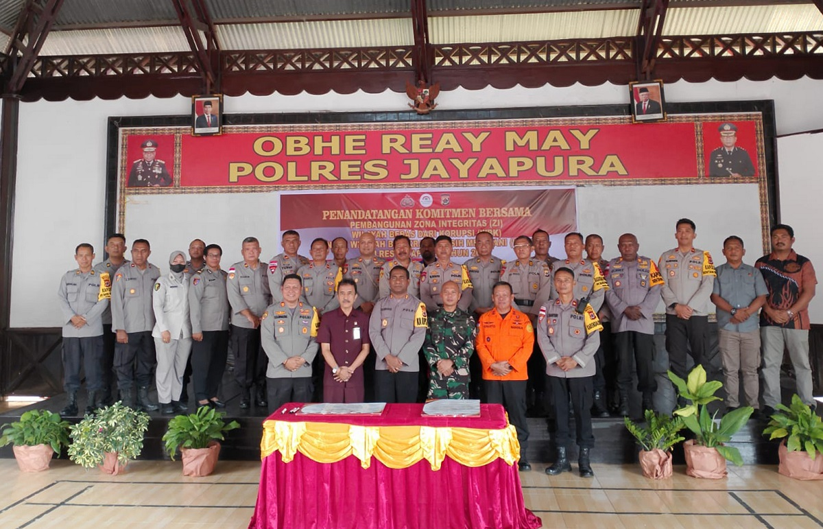 Dalam sambutannya Kapolres Jayapura, menyampaikan bahwa kegiatan penandatanganan komitmen bersama pembangunan zona integritas (ZI), Wilayah Bebas dari Korupsi (WBK) menuju Wilayah Birokrasi Bersih dan Melayani (WBBM) Polres Jayapura Tahun 2024, dilaksanakan dalam bentuk memberikan apresiasi dalam membangun Polres Jayapura menjadi Polres unggulan, khususnya di wilayah hukum Polda Papua.