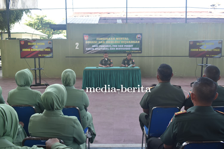 Tegal – Personil Kodim 0712/Tegal menerima Pembinaan Mental Rohani Dan Ideologi Kejuangan dari Tim Bintal Kodam IV/Diponegoro, bertempat di Lapangan Tenis Indoor Makodim Tegal Jln. Raya Pagongan Kecamatan
