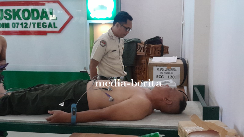 Tegal - Dalam rangka deteksi dini gejala penyakit jantung dan hipertensi, Personel Kodim 0712/Tegal melaksanakan pemeriksaan kesehatan (Rikkes) Elektro Kardio Gram (EKG) di Aula Makodim 0712/Tegal. Senin