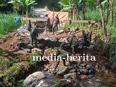 Banjarnegara – Danramil 17/Wanayasa, Kapten Inf Winarno, bersama anggota Koramil dan warga Desa Wanayasa bergotong royong dalam kegiatan pembuatan jalan yang menghubungkan Kecamatan Wanayasa dan Kecamatan
