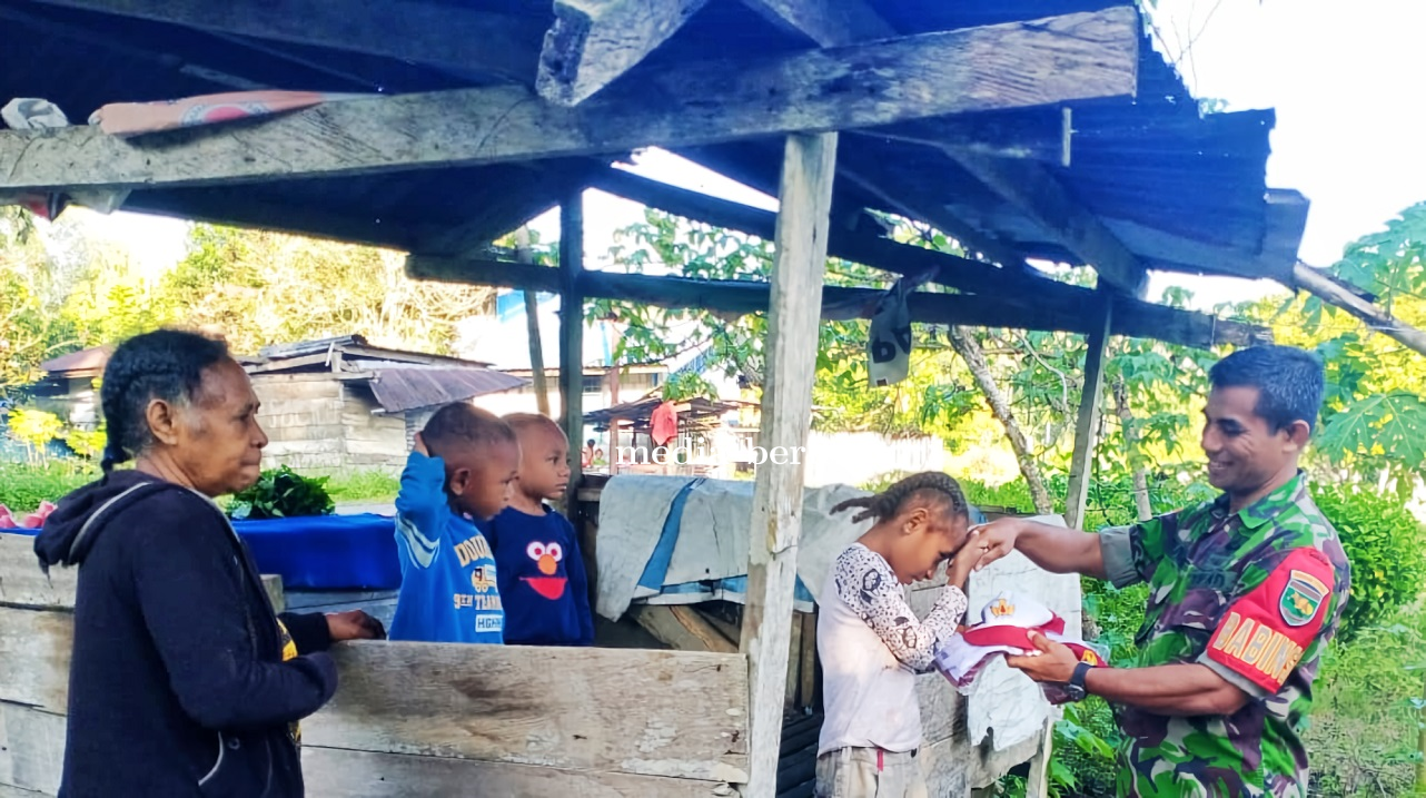Tahun Ajaran Baru Babinsa Koramil Kemtuk Gresi Berikan Baju Seragam Sekolah Warga Binaan