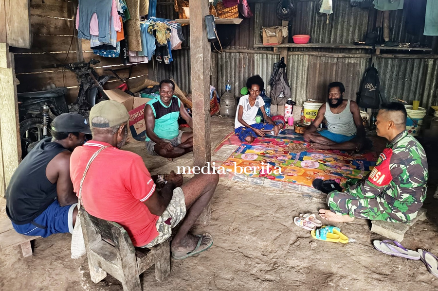 Keerom — Wujud nyata kepedulian dan kemanunggalan TNI dengan rakyat kembali ditunjukkan oleh Babinsa Koramil 1701-07/Web. Babinsa Serka Majali melaksanakan komunikasi sosial (komsos) sekaligus turun