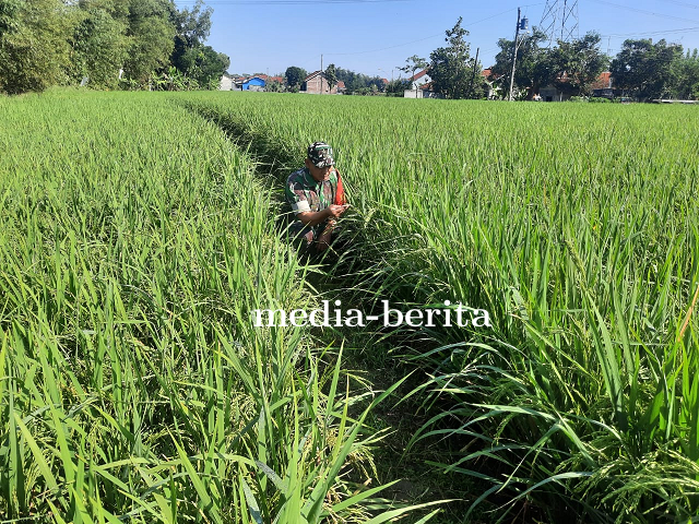 Tegal - Memastikan langsung perkembangan pertumbuhan padi milik Demplot Kodim 0712 Tegal yang di tanam oleh petani yang sebelumnya pada Awal musim tanam Babinsa Kodim 0712/Tegal senantiasa mendampingi hingga