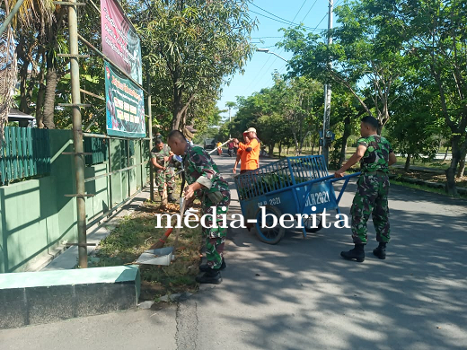 Ciptakan Lingkungan Bersih Anggota Koramil Tegal Barat Kodim 0712 Tegal Laksanakan Kerja Bakti