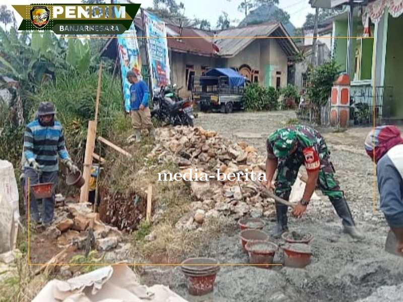 Banjarnegara - Babinsa Koramil 06/Klb Kodim 0704/Bna Desa Sirukem Koptu Apriyanto membantu warga dalam perbaikan talud jalan. Sebagai penahan tanah supaya tidak terjadi longsor. Dengan Panjang 25 meter dan tinggi 5