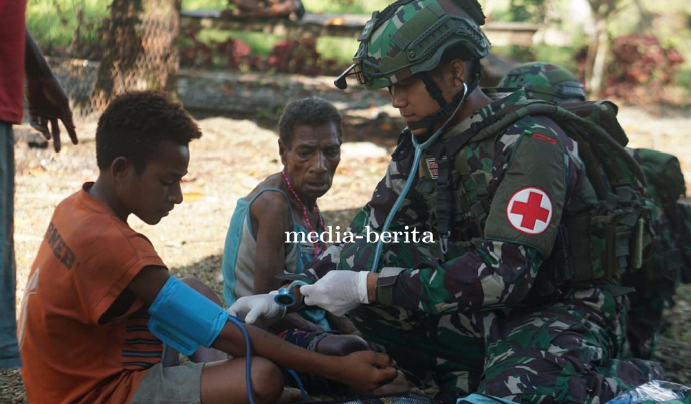 Kesejahteraan masyarakat yang tak pernah henti diusahakan, Pos Senggi Satgas Pamtas RI-PNG Statis Yonif 753/AVT bekerja sama dengan Puskesmas Senggi menggelar Pengobatan Gratis di Kampung Woslay, Distrik Senggi, Kab.