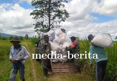Sentani – Sebagai bentuk dukungan TNI AD kepada petani dalam meningkatkan ketahanan pangan di wilayah, Babinsa Koramil 1701-11/Nimboran Serka Ruben Lay, Sertu Andri dan Serda Sukirno terjun langsung ke sawah