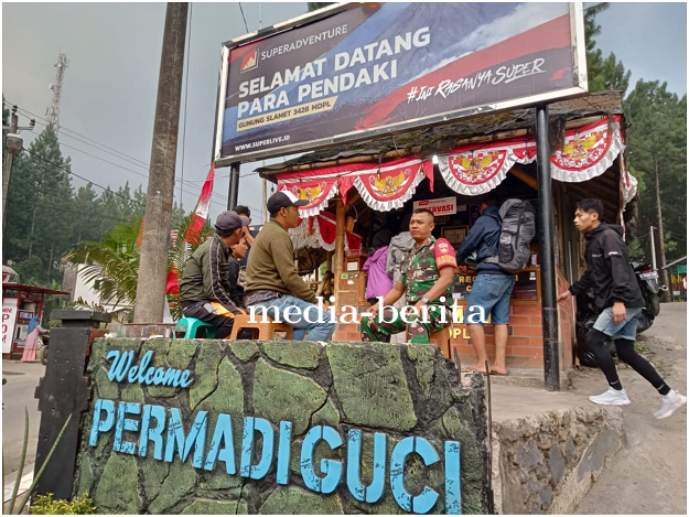 Tegal - Serda Suroso Babinsa Guci Koramil 19/Bumijawa Kodim 0712/Tegal melaksanakan anjangsana dan komunikasi sosial dengan Pengelola Jalur Pendakian Permadi (Pendakian Puncak G. Slamet) bertempat di Depan Base Camp